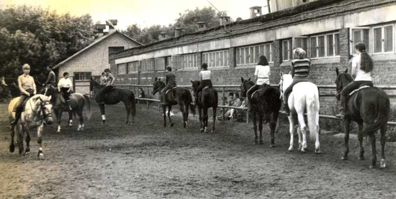 Смена Орловой И.Ю. вторник 18.45. Задний план слева направо:Петрухина Н.В. (член Совета общественности ШВЕ) на Трансляции, за ней виден Холькин Валерий на Кавказке, далее Катя Балашова на Бешмете, Ольга Пильщикова на Басне, Роман Чибисов на Текаше. В центре Варвара Чудакова на Белочке. Фото из архива Варвары Чудаковой. |